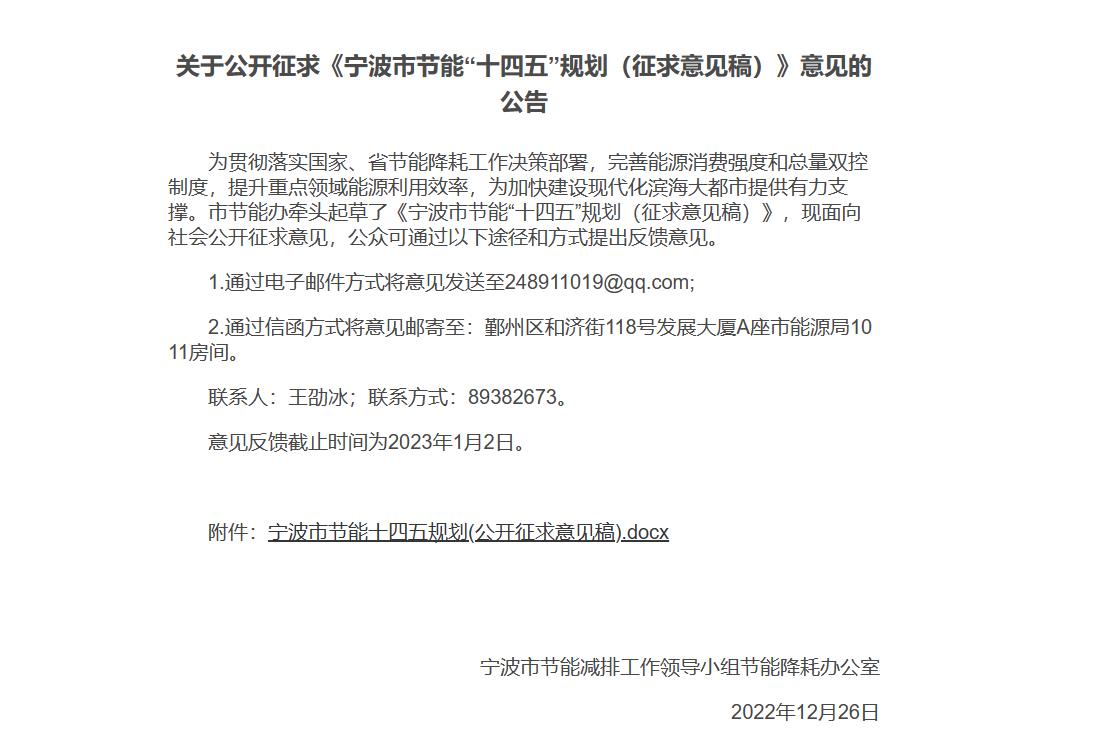 氫啟未來(lái)網(wǎng)獲悉,12月26日,寧波市節(jié)能減排工作領(lǐng)導(dǎo)小組節(jié)能降耗辦公室發(fā)布《寧波市節(jié)能“十四五”規(guī)劃(征求意見稿)》