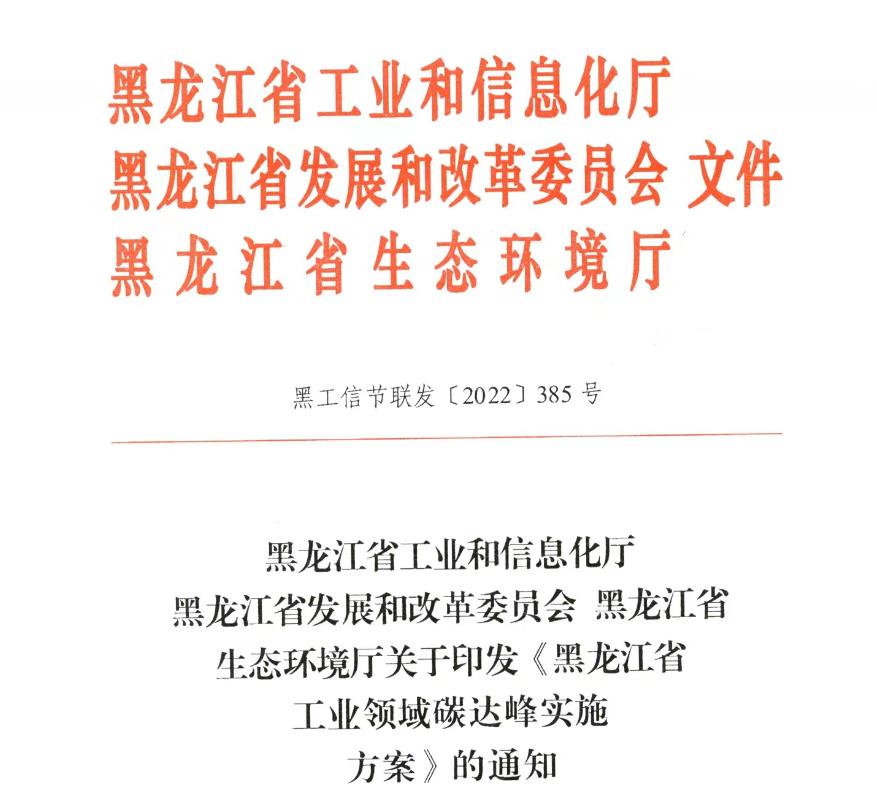 12月14日,黑龍江省工信廳、省發改委、省生態環境廳三部門聯合發布《黑龍江省工業領域碳達峰實施方案》