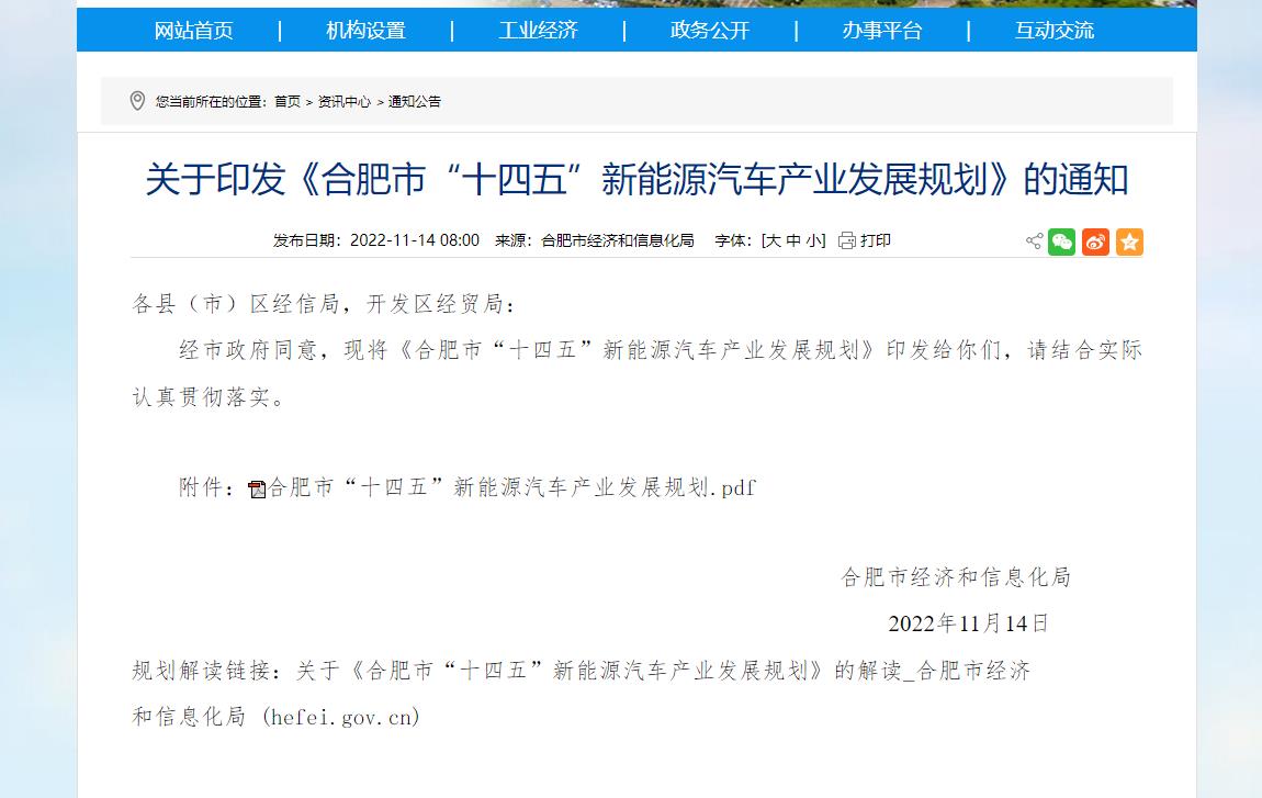 氫啟未來網獲悉,11月14日,合肥市經濟和信息化局發布《合肥市“十四五”新能源汽車產業發展規劃》。