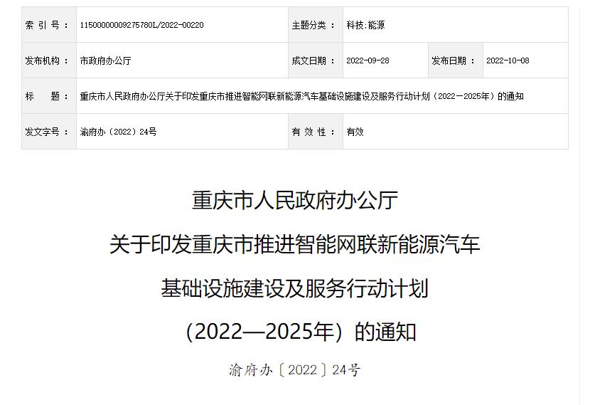 重慶加快氫能網(wǎng)絡(luò)建設(shè)!《重慶市推進智能網(wǎng)聯(lián)新能源汽車基礎(chǔ)設(shè)施建設(shè)及服務(wù)行動計劃(2022—2025年)》發(fā)布