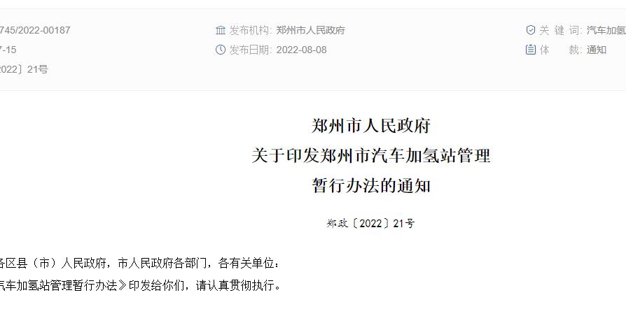 《鄭州市汽車加氫站管理暫行辦法》印發!