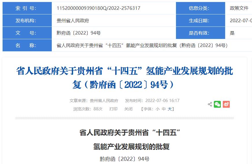 氫啟未來網獲悉,7月6日貴州省人民政府官網發布關于貴州省“十四五”氫能產業發展規劃的批復內容。
