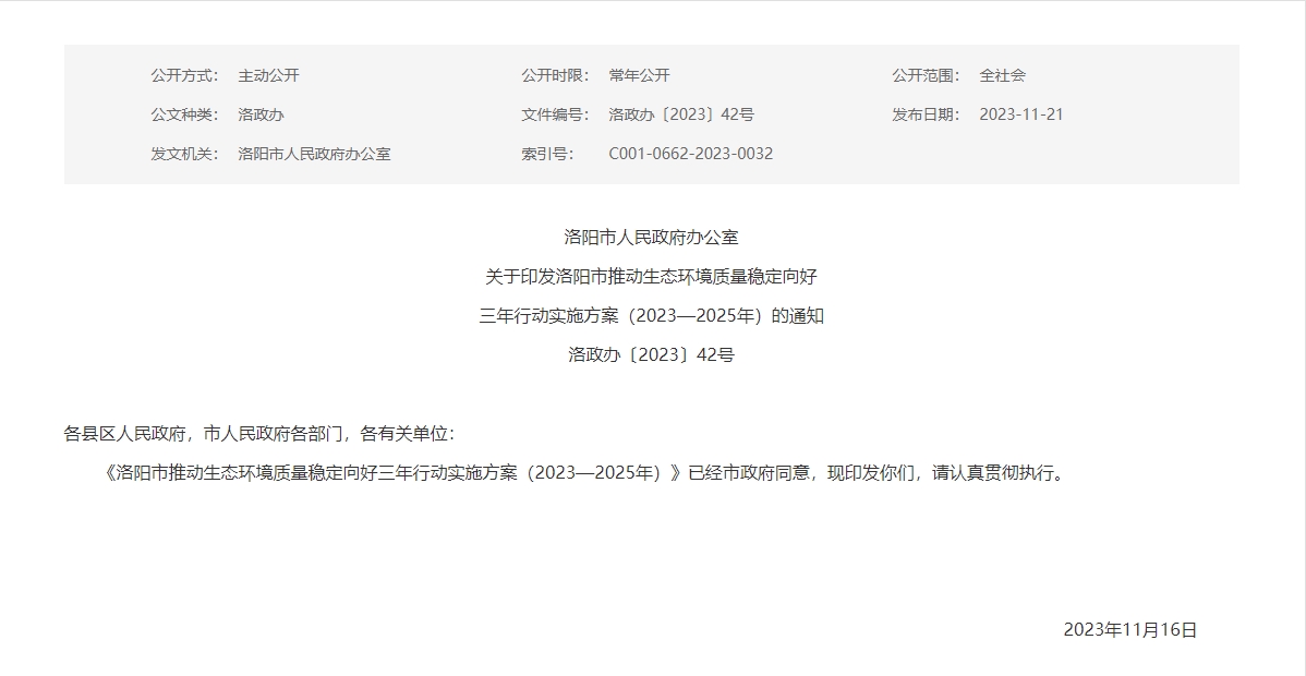 《洛陽市推動(dòng)生態(tài)環(huán)境質(zhì)量穩(wěn)定向好三年行動(dòng)實(shí)施方案(2023-2025年)》