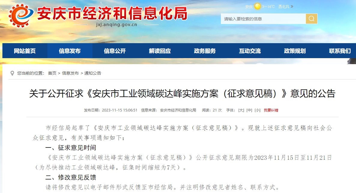 氫啟未來網獲悉,11月15日,安徽安慶市經濟和信息化局起草了《安慶市工業領域碳達峰實施方案(征求意見稿)》(以下簡稱:實施方案)。