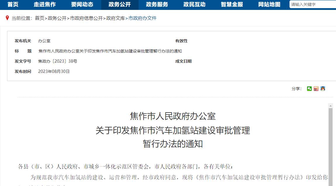 新動向!《焦作市汽車加氫站建設審批管理暫行辦法》重磅出臺