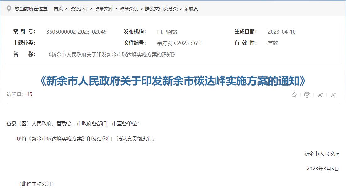 氫啟未來網獲悉,4月10日,新余市人民政府發布關于印發《新余市碳達峰實施方案》的通知