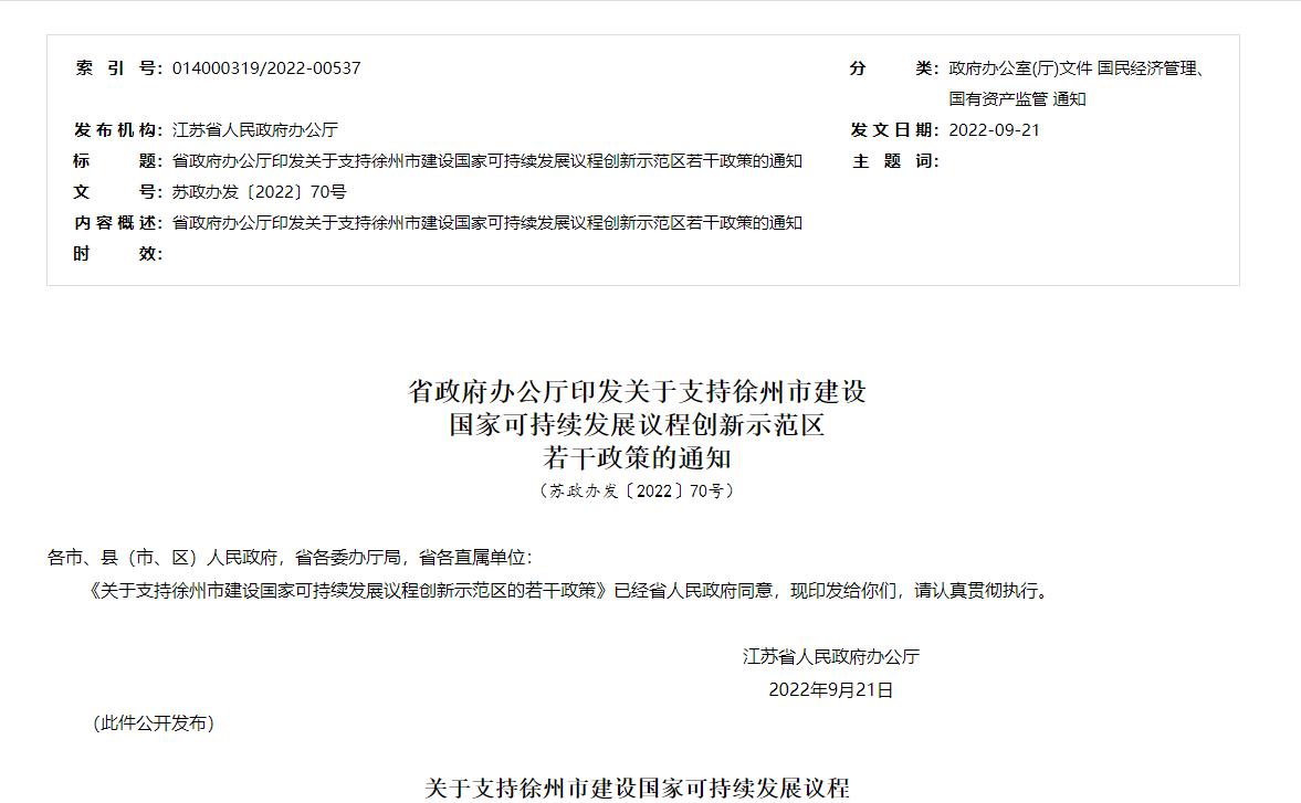 氫啟未來網消息,近日,江蘇發布關于支持徐州市建設國家可持續發展議程創新示范區的若干政策
