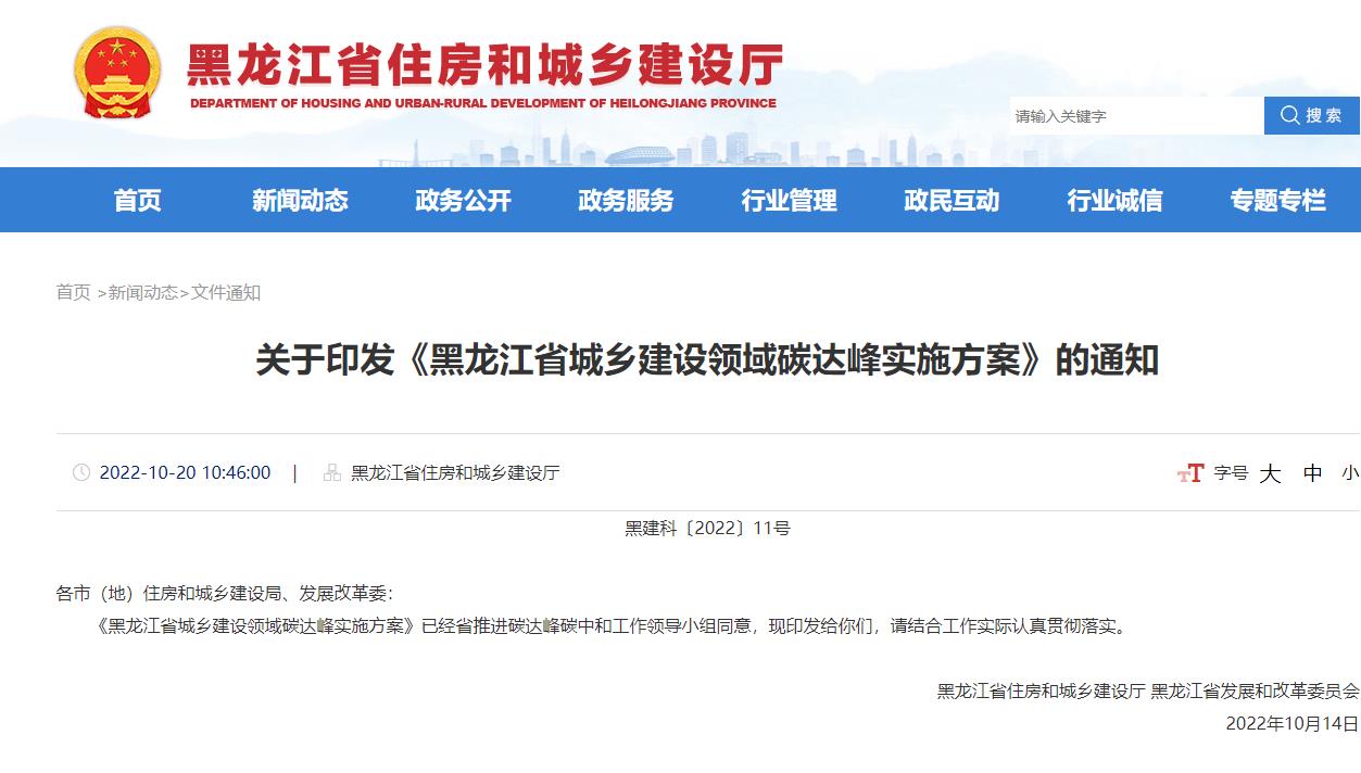 氫啟未來網獲悉,10月20日,黑龍江省住房和城鄉建設廳發布關于印發《黑龍江省城鄉建設領域碳達峰實施方案》的通知