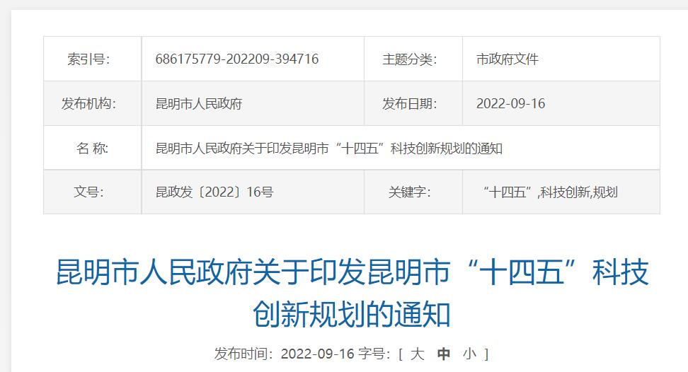 氫啟未來網(wǎng)獲悉,9月16日,昆明市人民政府發(fā)布關(guān)于印發(fā)昆明市“十四五”科技創(chuàng)新規(guī)劃的通知