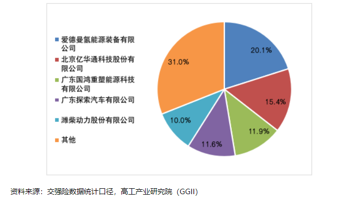 隨著燃料電池技術的不斷成熟,相關產品已逐步進入商業化應用階段,可廣泛應用在交通、工業、建筑、軍事等場景。目前,日本豐田和韓國現代占全球燃料電池出貨量的三分之二, 日本氫燃料電池專利數居全球首位。在全球氫燃料電池汽車發展方面,日本和韓國走在前列,豐田、本田和現代也是全世界范圍內燃料電池汽車累計銷量最高的三家車企。根據深圳高工產業研究院(GGII)發布的《燃料電池汽車月度數據庫》統計顯示,2020年我國氫燃料電池系統裝機量約為79.2MW,同比下降37%。其中,氫燃料電池系統在客車上的合計裝機量約為71.7MW,同比增長46%;在專用車上的合計裝機量約為7.5MW,同比下降90%。從裝機量排名來看,2020年氫燃料電池系統裝機量排名前五的企業分別為愛德曼、億華通、國鴻重塑、探索汽車、濰柴動力,前五家企業裝機量占2020年中國氫燃料電池系統裝機量的69%。