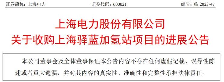 上海電力在5月22日發布公告,表示其全資子公司國電投長江氫能科技有限公司近日已成功收購上海化工區驛藍加氫站項目的51%股權。