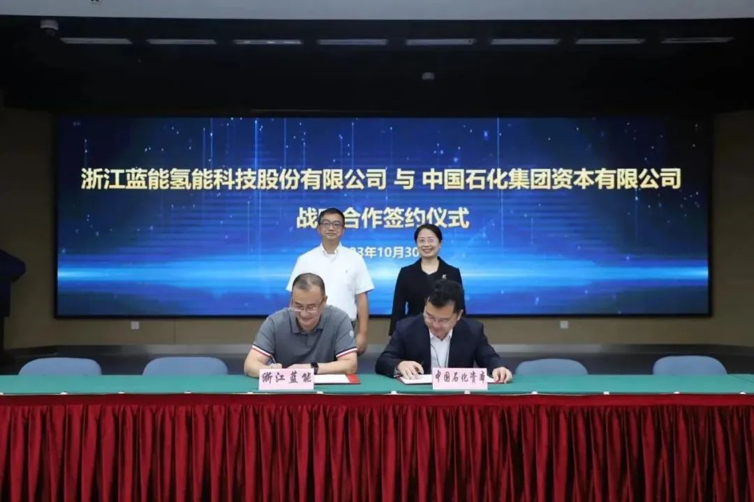 早在本次融資之前,浙江藍能和中石化已在氫能領域開展緊密合作。據統計,浙江藍能的儲氫瓶組在中國石化加氫站體系中實現了約60%的占有率,并形成了良好的發展態勢。作為本次融資項目的領投方,中國石化資本與浙江藍能相關負責人在申能集團領導宋雪楓和中國石化資本黨委副書記、紀委書記、工會主席鄧群偉的共同見證下,簽署了戰略合作協議。