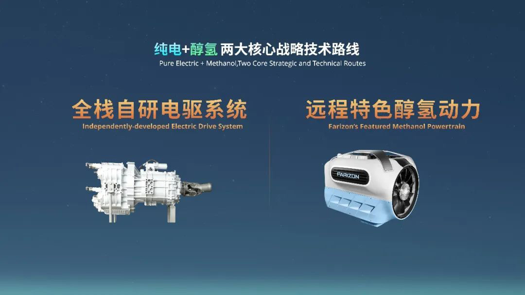 基于“純電+醇氫”兩大新能源路徑支撐,本次發布會遠程新能源還推出了星瀚G超級電動重卡、星瀚G超醇電混重卡、星瀚G醇氫電一體重卡等3個綠色運力解決方案。其中代表前瞻技術的遠程星瀚G醇氫電一體重卡借助甲醇高效利用氫能,打造甲醇重整制氫燃料電池技術路線,讓氫能真正成為適合汽車使用的能源,這將是新能源重卡零碳陸運的終極解決方案。