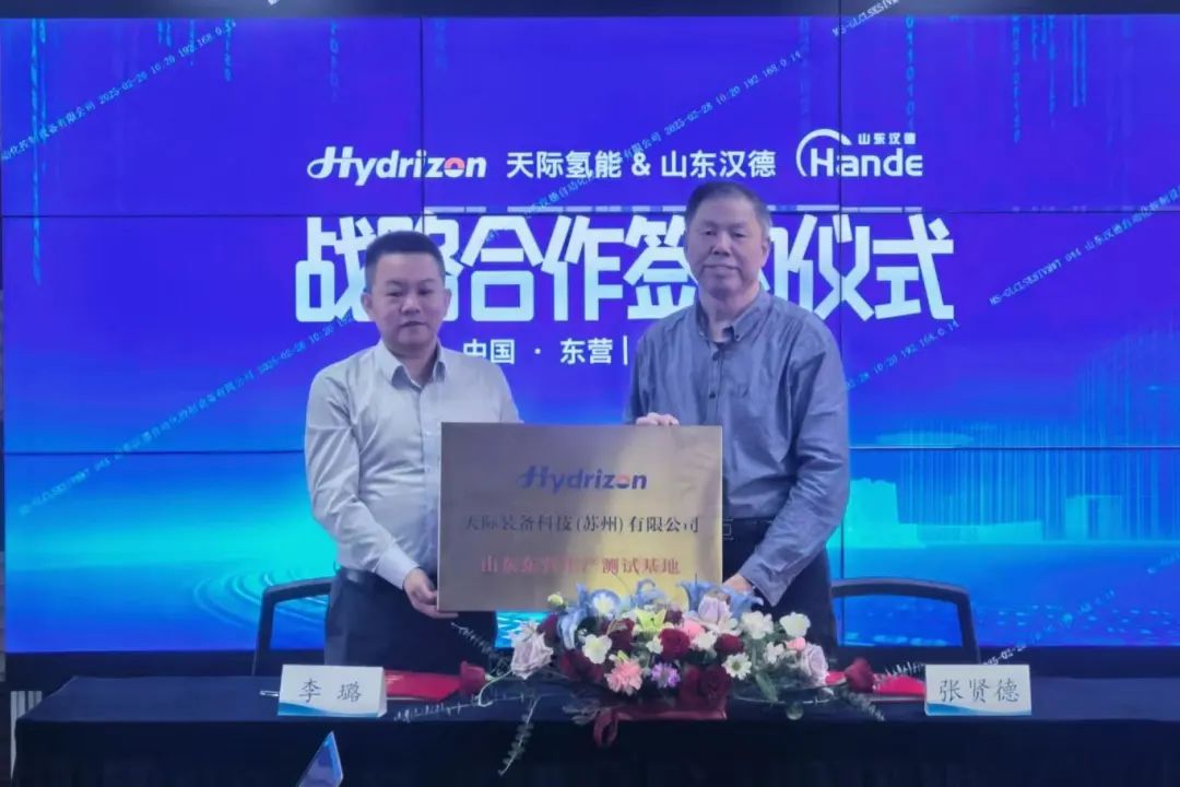 2月28日,天際氫能科技(北京)有限公司與漢德能源設(shè)備有限公司正式簽署戰(zhàn)略合作協(xié)議,并舉行“天際氫能東營生產(chǎn)基地”揭牌儀式。雙方宣布通過資源互補、協(xié)同創(chuàng)新,共同構(gòu)建“研發(fā)-制造-市場”全鏈條協(xié)同模式,加速推進(jìn)氫能裝備規(guī)模化應(yīng)用與全球化布局。