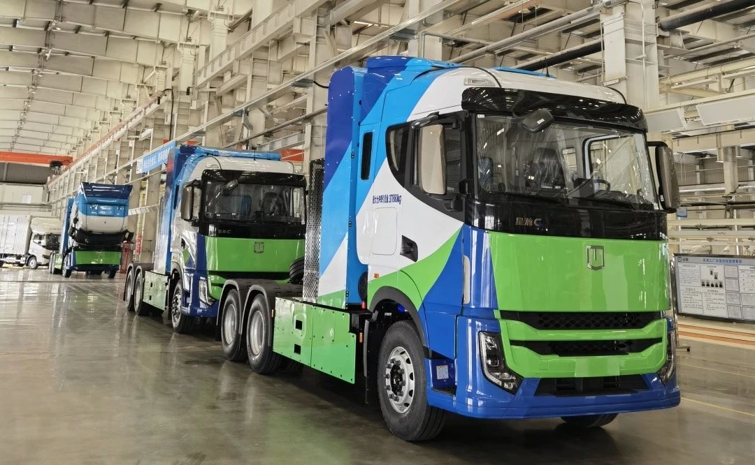 國內首批大批量上裝200KW氫能重卡下線