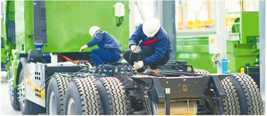 2月22日,在位于青島國(guó)際院士港智能制造產(chǎn)業(yè)園里的青島德先新能源汽車制造有限公司,技術(shù)工人正在組裝氫燃料電池自卸車,為自卸車提供強(qiáng)勁動(dòng)能的,是裝在一個(gè)大箱子里的氫動(dòng)力系統(tǒng)——“燃料電堆”。