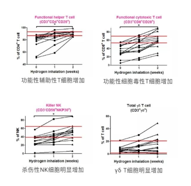 (氫氣吸入兩星期后免疫細(xì)胞顯著增多)