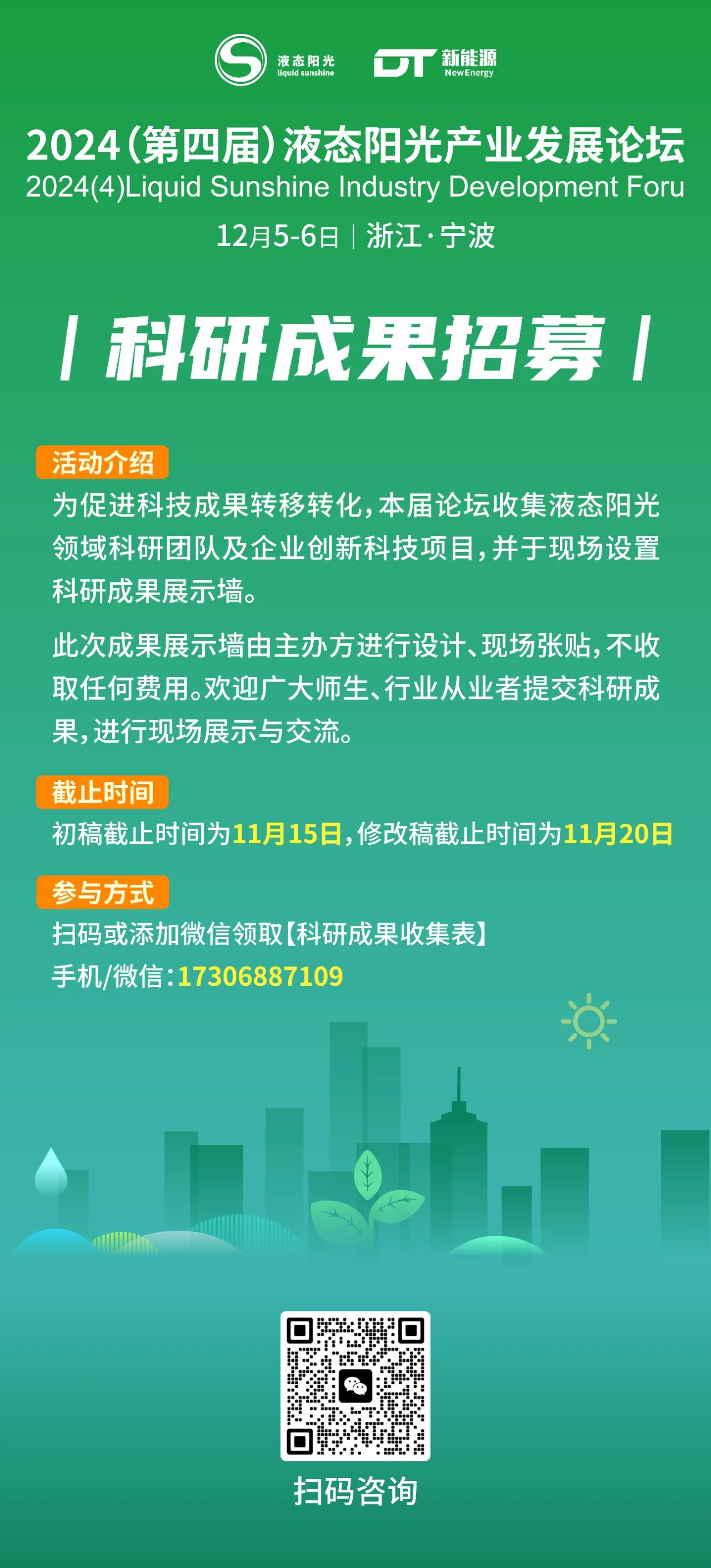 為助力液態陽光(綠色甲醇)產業高質量發展,抓住全球能源變革的市場大機遇。“2024(第四屆)液態陽光產業發展論壇”將于2024年12月5-6日,在浙江寧波舉辦。論壇將深度探討液態陽光(綠色甲醇)產業宏觀政策指向、規模化生產的關鍵技術難點和解決方案、發展前景和趨勢,以及綠色甲醇下游新興應用場景進展(甲醇重整制氫、汽車/船舶甲醇燃料電池、甲醇制SAF等)等核心話題,邀請行業重量級院士專家和產業鏈上中下游代表性企業進行交流,推進產學研用深入交流與合作。