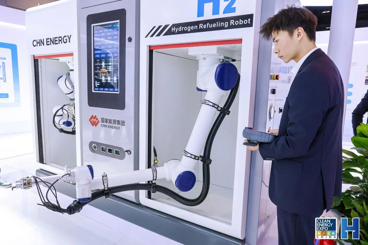 展會首日,國家能源集團專門設立“氫能技術開放日”展區,以全面展示其在氫能領域的發展規劃與布局,并展出多項科技創新成果。其中“一體化智能加氫機器人”“5MW級堿性電解水制氫綜合測試平臺”等拳頭產品均為首次公開亮相。