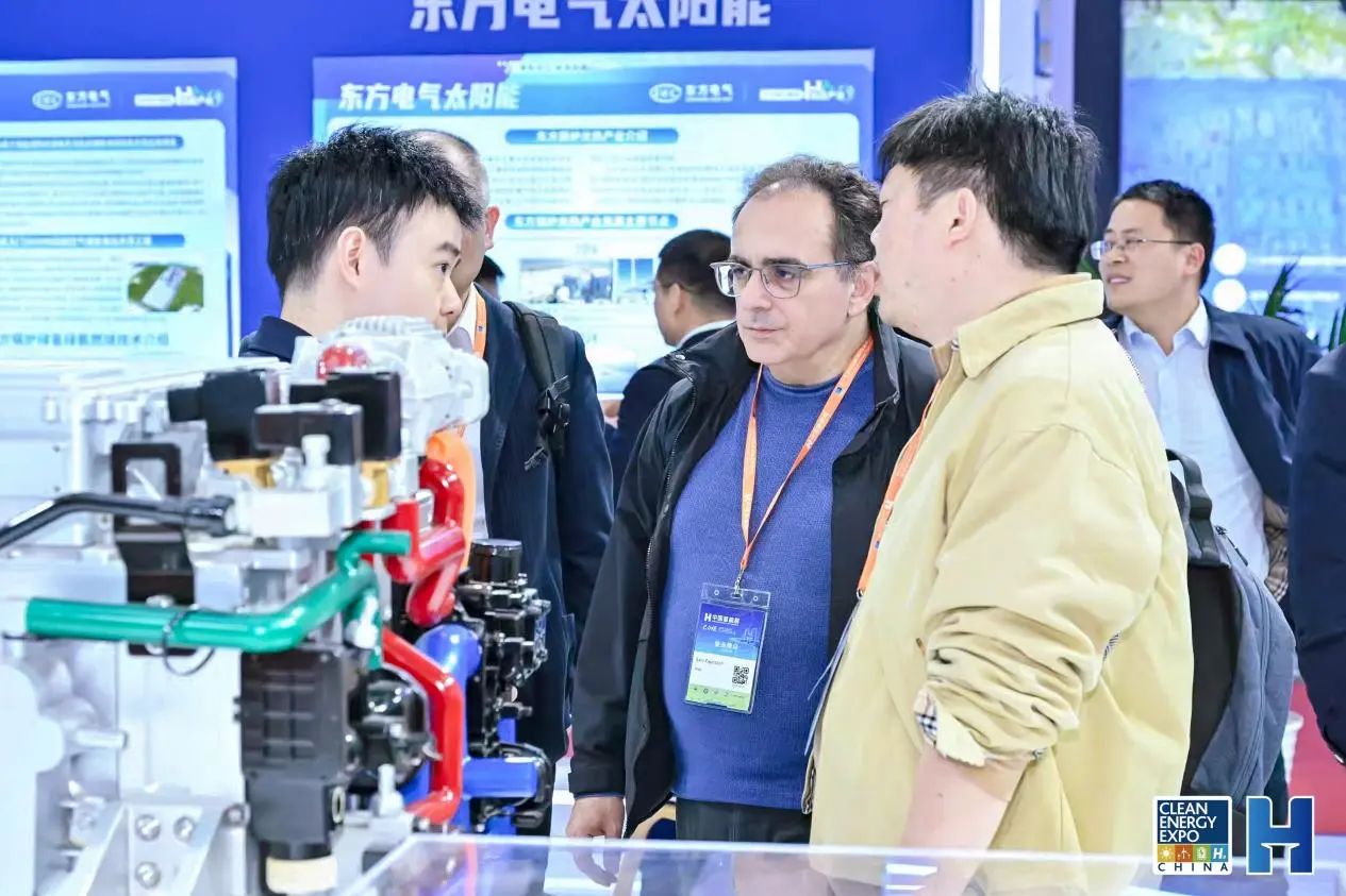 不僅如此,在各大展區還看到國際專業買家團的身影。國際買家團來自德國、法國、英國、瑞士、瑞典、西班牙、葡萄牙,荷蘭、俄羅斯、新加坡、印度等多個國家。歐洲專業觀眾對中國成熟的堿性電解槽技術產品、燃料電池電堆/系統產品等十分感興趣,他們認為這些用來配套歐洲綠氫項目以及配套燃料電池發電、儲能等,都將推動氫能產業項目落地,助力歐洲氫能多場景應用。