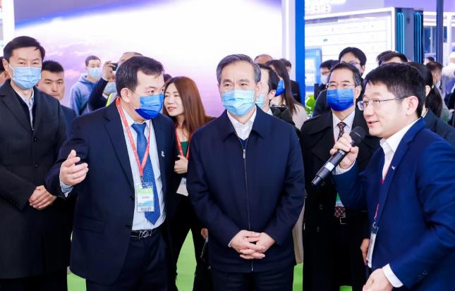 ▲圖:中國(guó)國(guó)際貿(mào)易促進(jìn)委員會(huì)會(huì)長(zhǎng)、黨組書(shū)記,中國(guó)國(guó)際商會(huì)會(huì)長(zhǎng)任鴻斌參觀隆基展臺(tái)