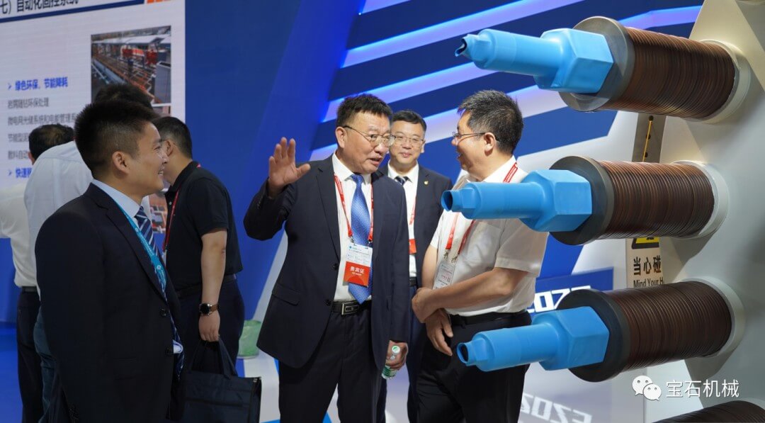 6月1日,寶石機械公司執(zhí)行董事、黨委書記忽寶民,副總經理秦強、曹曉宇,副總工程師賀環(huán)慶來到展會現(xiàn)場,與有關領導、客商和用戶進行溝通交流。