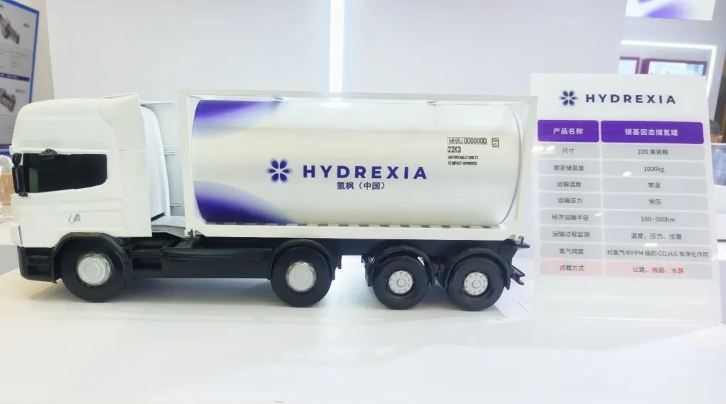 我們自主研發(fā)的業(yè)內(nèi)突破性鎂基固態(tài)儲(chǔ)運(yùn)氫技術(shù),以高密度、常溫常壓的突出優(yōu)勢(shì)為氫氣儲(chǔ)運(yùn)提供更為高效的解決方案。現(xiàn)場(chǎng)展示的鎂基固態(tài)儲(chǔ)運(yùn)氫車(chē)(模型)為氫楓今年10月份交付的首批儲(chǔ)運(yùn)氫產(chǎn)品。我們的儲(chǔ)氫罐采用標(biāo)準(zhǔn)集裝箱設(shè)計(jì),單罐儲(chǔ)氫量為1t~1.5t,具有增強(qiáng)的安全性、更大的儲(chǔ)氫容量、更高的氫氣純度、更節(jié)約的運(yùn)輸成本、更長(zhǎng)的使用壽命等優(yōu)勢(shì),未來(lái)在耦合可再生能源儲(chǔ)能、氫化工、氫冶金等領(lǐng)域展現(xiàn)出強(qiáng)大的應(yīng)用潛力。