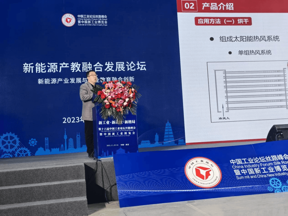 山東華宇工學(xué)院袁家普教授就《雙碳背景下新能源創(chuàng)新技術(shù)應(yīng)用》進(jìn)行了主題演講。介紹了學(xué)院的專(zhuān)業(yè)設(shè)置、產(chǎn)學(xué)研合作等基本情況,向大家分享了學(xué)校參與企業(yè)的研發(fā)情況,對(duì)創(chuàng)新產(chǎn)品雙通管式太陽(yáng)能的熱風(fēng)系統(tǒng)的應(yīng)用和空氣源熱泵的創(chuàng)新進(jìn)行了詳細(xì)介紹,以及學(xué)校運(yùn)用現(xiàn)代手段對(duì)智慧控制平臺(tái)的開(kāi)發(fā)應(yīng)用情況。