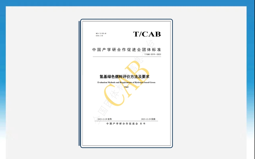 1月8日,由中國氫能聯盟牽頭組織的《氫基綠色燃料評價方法及要求》(T/CAB 0319-2023)團體標準正式發布。