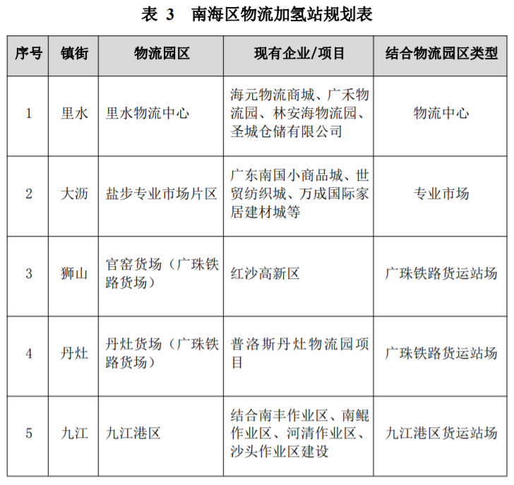 c.需協(xié)調(diào)佛山市和南海區(qū)物流業(yè)發(fā)展規(guī)劃,盡量落實(shí)已規(guī)劃的物流加氫站點(diǎn)。