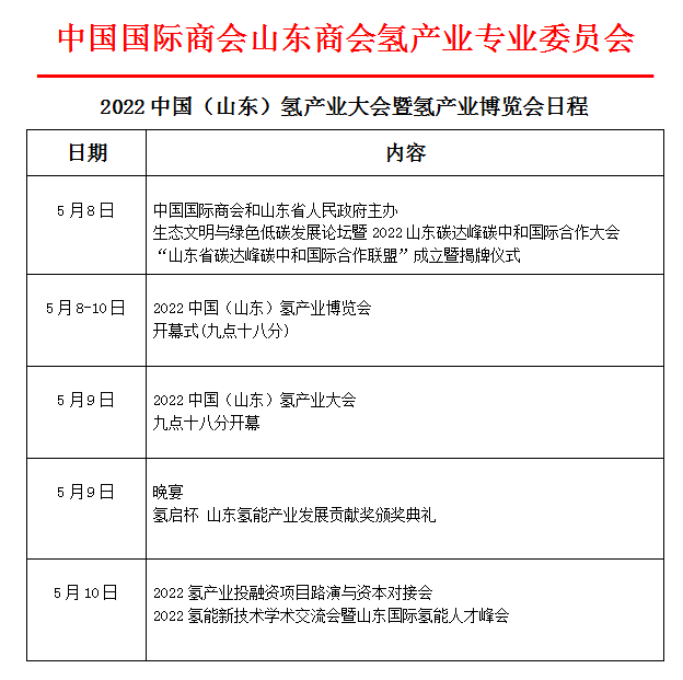 中國(山東)氫博會日程