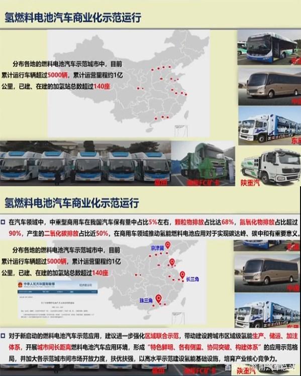 中重型商用車在我國汽車保有量中占比5%左右,但顆粒排放物占比達(dá)到68%,氮氧化合物占比甚至超過90%。從它消耗成品油的比例來看,二氧化碳排放要占50%左右,因此在商用車領(lǐng)域推動氫能燃料電池應(yīng)用,對實現(xiàn)碳達(dá)峰、碳中和有十分重要的意義。