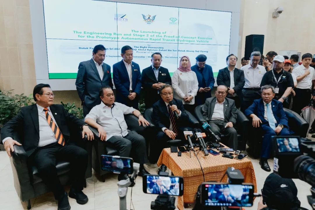 砂拉越州總理阿邦佐·哈里出席儀式,并現(xiàn)場試乘體驗了智軌,他表示,一直以來砂拉越州政府都重點支持發(fā)展公共交通以解決城市交通擁堵問題,呼吁市民培養(yǎng)乘坐公共交通的出行習(xí)慣,此次采用的氫能智軌車輛高度契合古晉的城市發(fā)展需求與規(guī)劃。他透露,砂拉越州政府已向中國中車訂購了38列智軌,在試跑結(jié)束后,這些車將分批次從中國交付抵達,并投入使用覆蓋古晉的三條線路。他還表示,州政府將進一步加大新能源相關(guān)設(shè)備及交通設(shè)施的投入與建設(shè)。