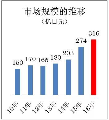 日本健康產業報2016年12月21日發表的生產廠家統計調查顯示: