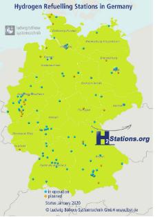 聯邦運輸和數字基礎設施部(BMVI)和H2 Mobility宣布,繼續擴大氫氣基礎設施,計劃2020年建成100個加氫站,到2021年,德國將有130個加氫站投入運營。