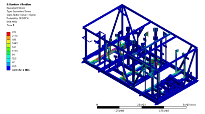 三、MDP裝置的小型化,需考慮運輸方便。通過整體進行三維設(shè)計,對支撐結(jié)構(gòu)等模擬公路運輸制動、顛簸等狀況,進行應(yīng)力分析,保證設(shè)備在運輸過程中的穩(wěn)定性。