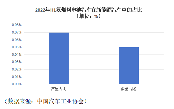 2022年1-6月,中國新能源汽車的產(chǎn)銷量分別達(dá)到了266.1萬輛和260.0萬輛。其中,燃料電池汽車產(chǎn)銷量分別為1803輛和1379輛,占比分別為0.07%和0.05%。可以看出,氫燃料電池汽車仍是市場中較為小眾的新能源汽車產(chǎn)品。