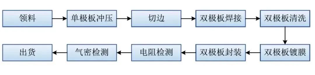 通常來說,金屬雙極板采用沖壓與液壓成型工藝,用壓力裝置和剛性模具對板材施加一定的外力,使其產生塑性變形,即將0.1mm的超薄金屬板,沖壓成陰陽單極板,后由兩塊單極板通過連接工藝對應連接而成。