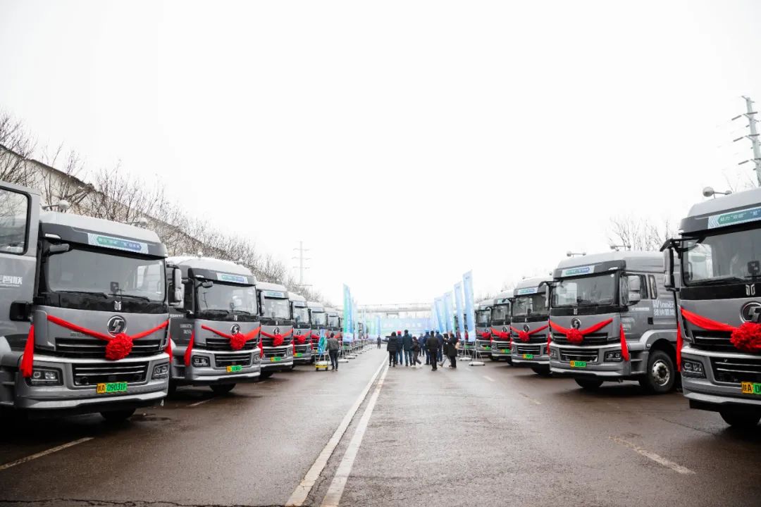 在會場所有領導的見證下,維納氫能執行董事宋琦向陜鋼集團龍鋼公司黨委書記、董事長陳驍交付車輛鑰匙,伴隨韓城市委副書記張景鋒的宣布,33輛重卡鳴笛啟動,以氫能重卡為核心的綠色運輸工作正徐徐展開。