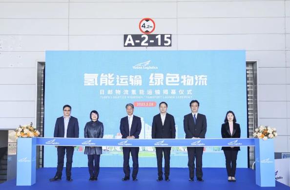 當天的揭幕儀式上,上海市外商投資協會會長黃峰先生、上海市黃浦區商務委員會主任金韶靖女士等領導蒞臨現場,Yusen Logistics東亞區總裁原秀則先生、日郵物流中國總裁兼CEO守屋智郎先生,以及羚牛氫能CEO蒲紅霞女士、云豐物流董事長董平先生,共同到場為揭幕儀式剪彩。環境友好型的新型燃料電池車——氫燃料電池汽車亮相現場。