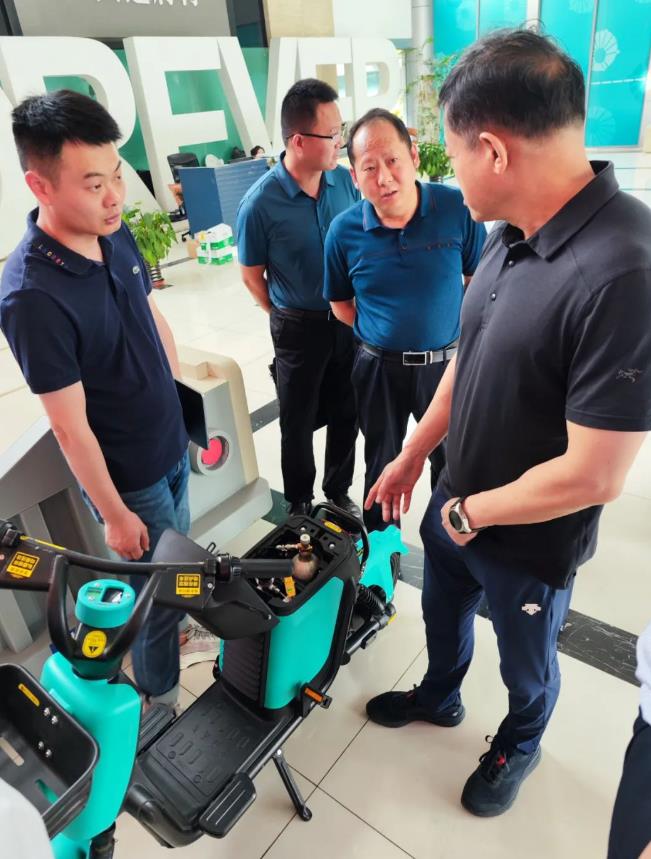 滿電未來技術骨干向泰安肥城領導介紹氫能兩輪車