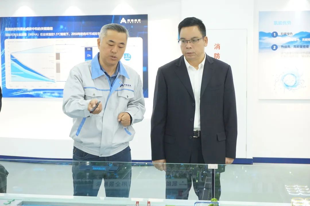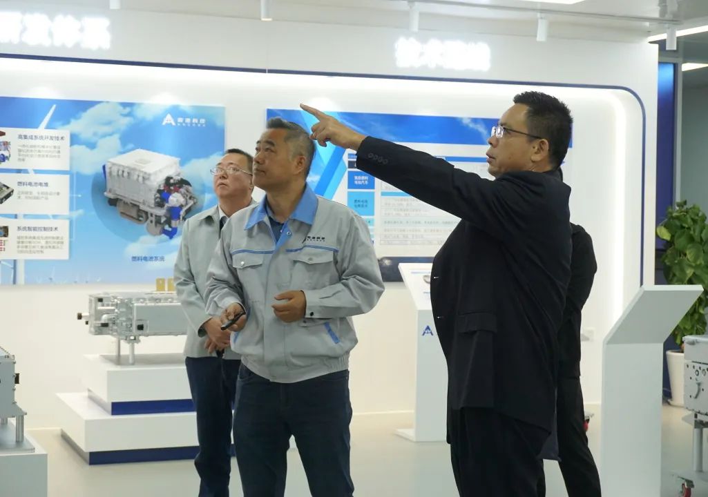 上海安池科技有限公司梁鐵強董事長攜各業(yè)務板塊負責人陪同參觀了公司展廳、性能檢測實驗室等產(chǎn)線裝備,雙方隨后圍繞在漳州高新區(qū)氫能產(chǎn)業(yè)的政策支持、技術創(chuàng)新、市場應用等問題進行了深入研討和交流。