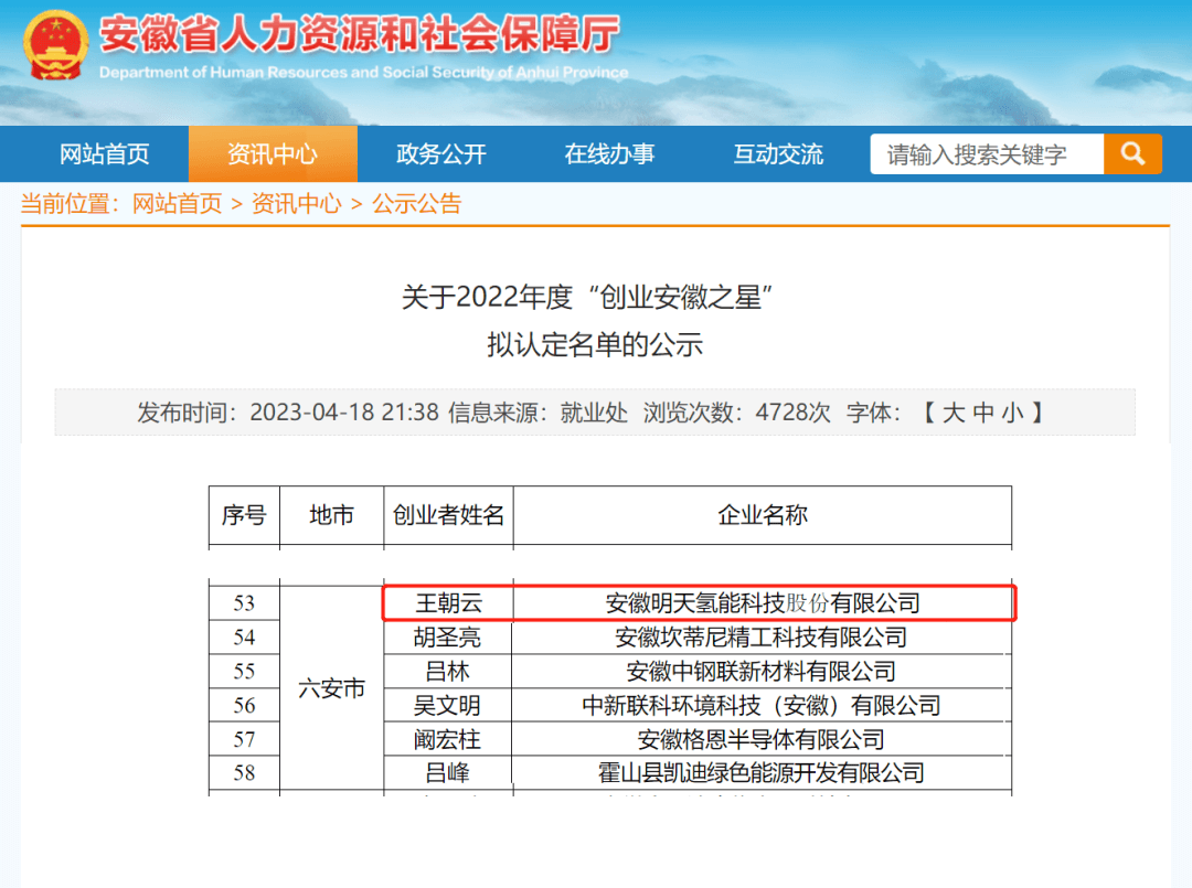 為全面落實習近平總書記關于“創新創業創造”的重要論述,以及省委、省政府關于創新創業的工作部署,讓創業成為安徽的時尚活力和形象名片,讓安徽成為各類人才的創業熱土,安徽省人力資源和社會保障廳開展“創業安徽之星”評選活動,公司董事長王朝云被授予2022年度“創業安徽之星”稱號。