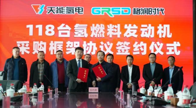 1月8日,距上次浙江天能氫能源科技有限公司與山西格潤(rùn)時(shí)代工程機(jī)械有限公司簽約戰(zhàn)略框架協(xié)議不到3個(gè)月,雙方再次簽訂118臺(tái)氫燃料發(fā)動(dòng)機(jī)采購(gòu)戰(zhàn)略合作協(xié)議。