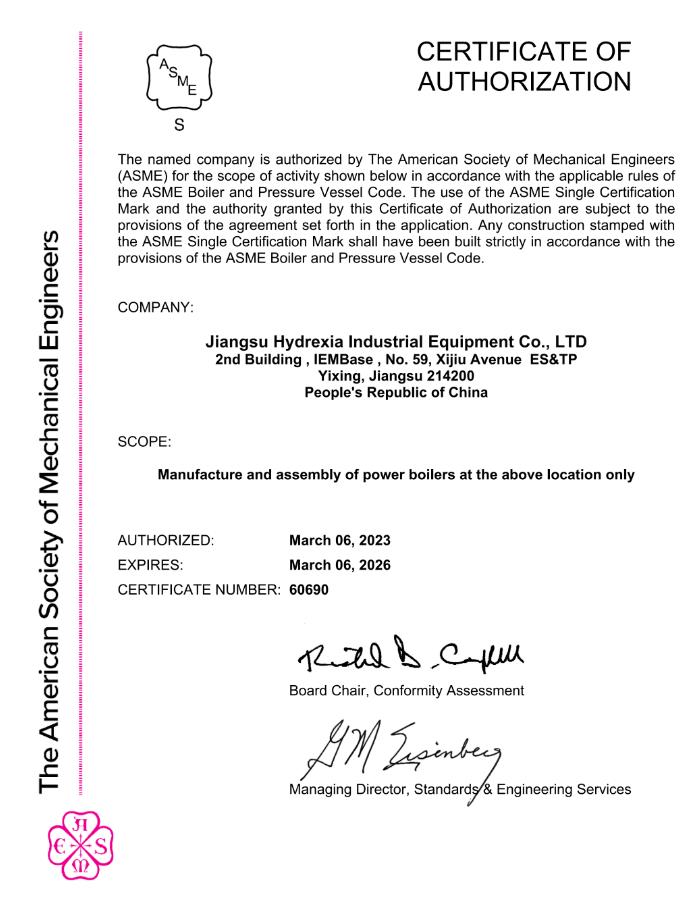 2023年3月,氫楓集團(tuán)的宜興生產(chǎn)基地順利通過(guò)了ASME取證聯(lián)檢工作,并取得了“S+U+U2”ASME鋼印證書。此次通過(guò)ASME資質(zhì)認(rèn)證,標(biāo)志著集團(tuán)動(dòng)力鍋爐及壓力容器裝備質(zhì)量保證體系得到了國(guó)際權(quán)威機(jī)構(gòu)的認(rèn)可,集團(tuán)裝備生產(chǎn)能力擴(kuò)大,質(zhì)量管理水平和技術(shù)水平進(jìn)一步提升。