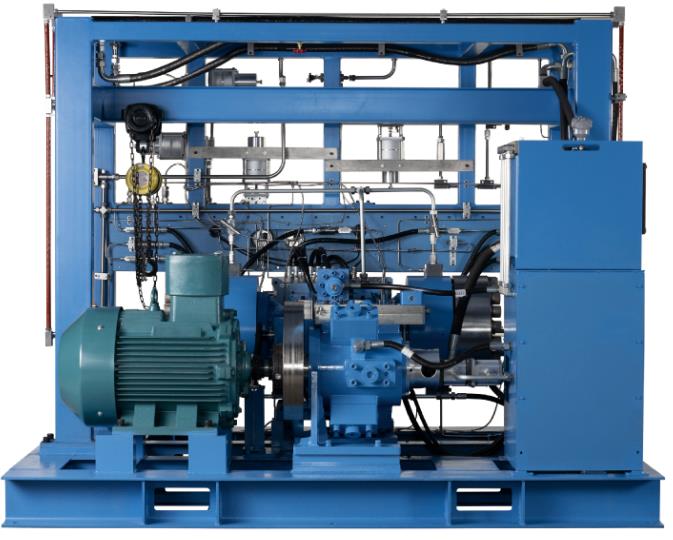 整機方案“為氫能而生”,液驅方案可適應“頻繁啟停、冷態開車、帶載啟停”的加氫站特殊工況,通過驅動、增壓單元多級串并聯,實現超大排量、超大壓比需求。由于取消了曲軸連桿傳動機構,整機體積非常緊湊,僅為同類傳統隔膜式壓縮機的50%左右,應用場景非常廣泛。