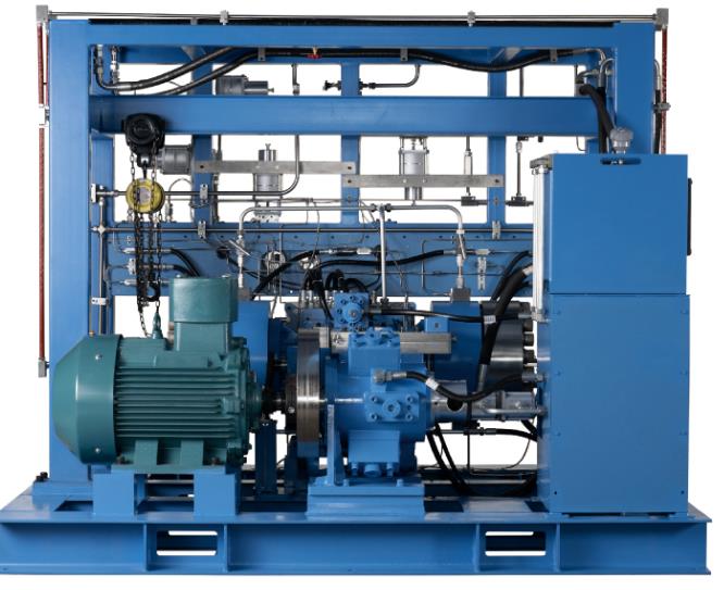 整機方案“為氫能而生”,液驅(qū)方案可適應(yīng)“頻繁啟停、冷態(tài)開車、帶載啟?!钡募託湔咎厥夤r,通過驅(qū)動、增壓單元多級串并聯(lián),實現(xiàn)超大排量、超大壓比需求。由于取消了曲軸連桿傳動機構(gòu),整機體積非常緊湊,僅為同類傳統(tǒng)隔膜式壓縮機的50%左右,應(yīng)用場景非常廣泛。